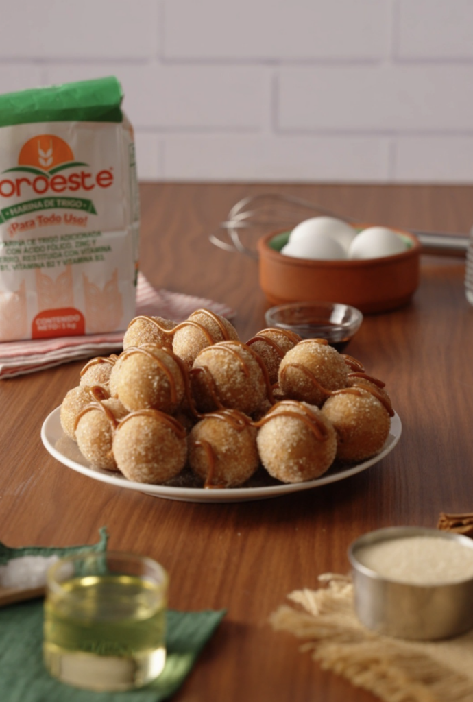 Hay antojos que no se explican… solo se cocinan. Prepara estas bolitas dulces con Harina Noroeste® y siente cómo el hogar se sirve calientito, con cajeta y todo.